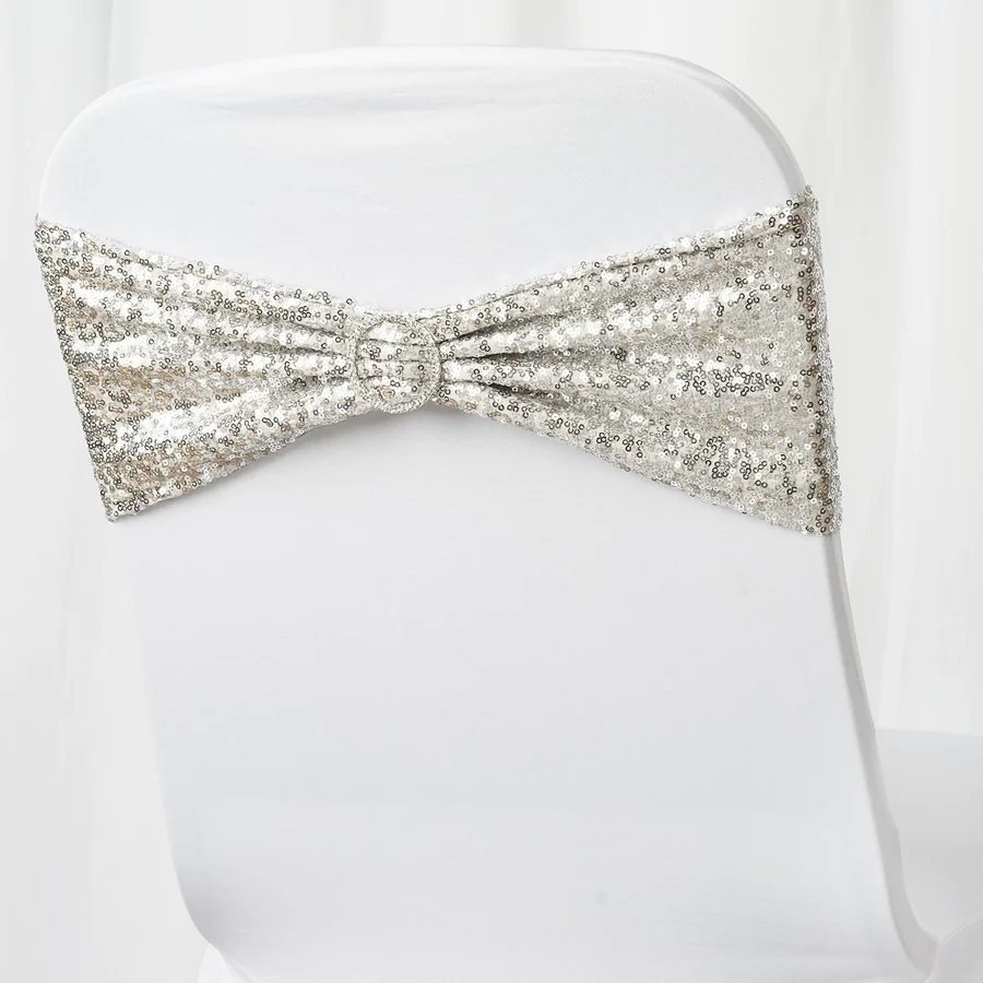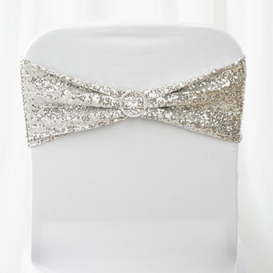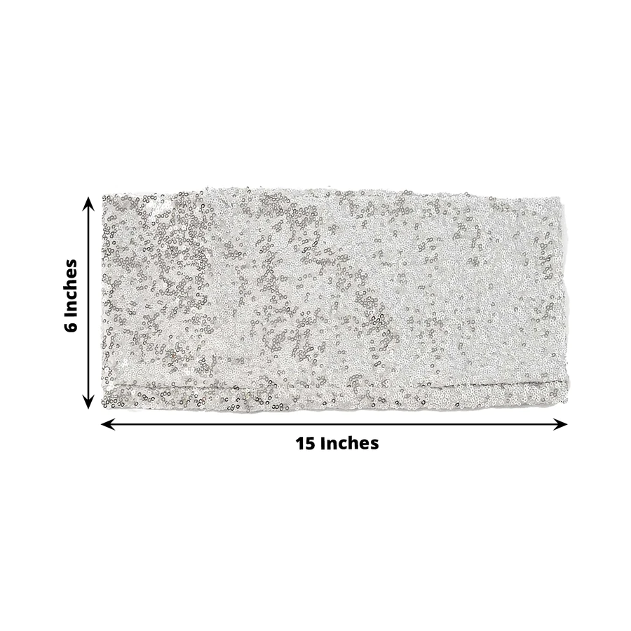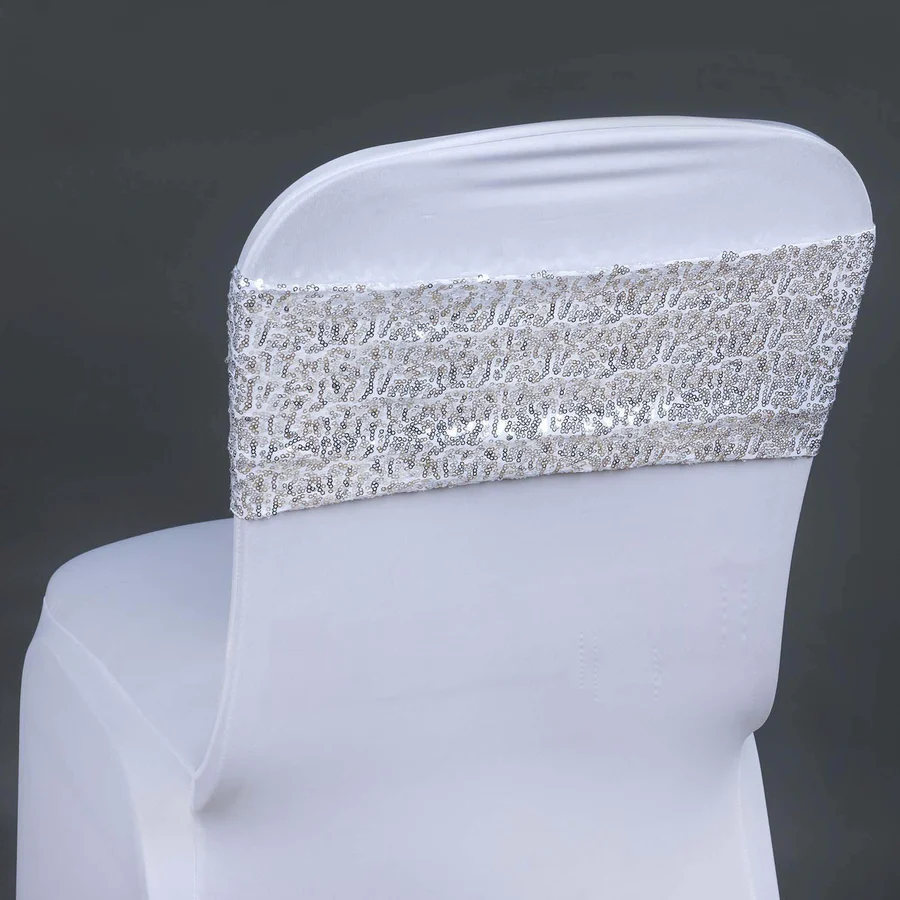 Sequin Spandex Chair Sashes Bands Silver – 6″x15″